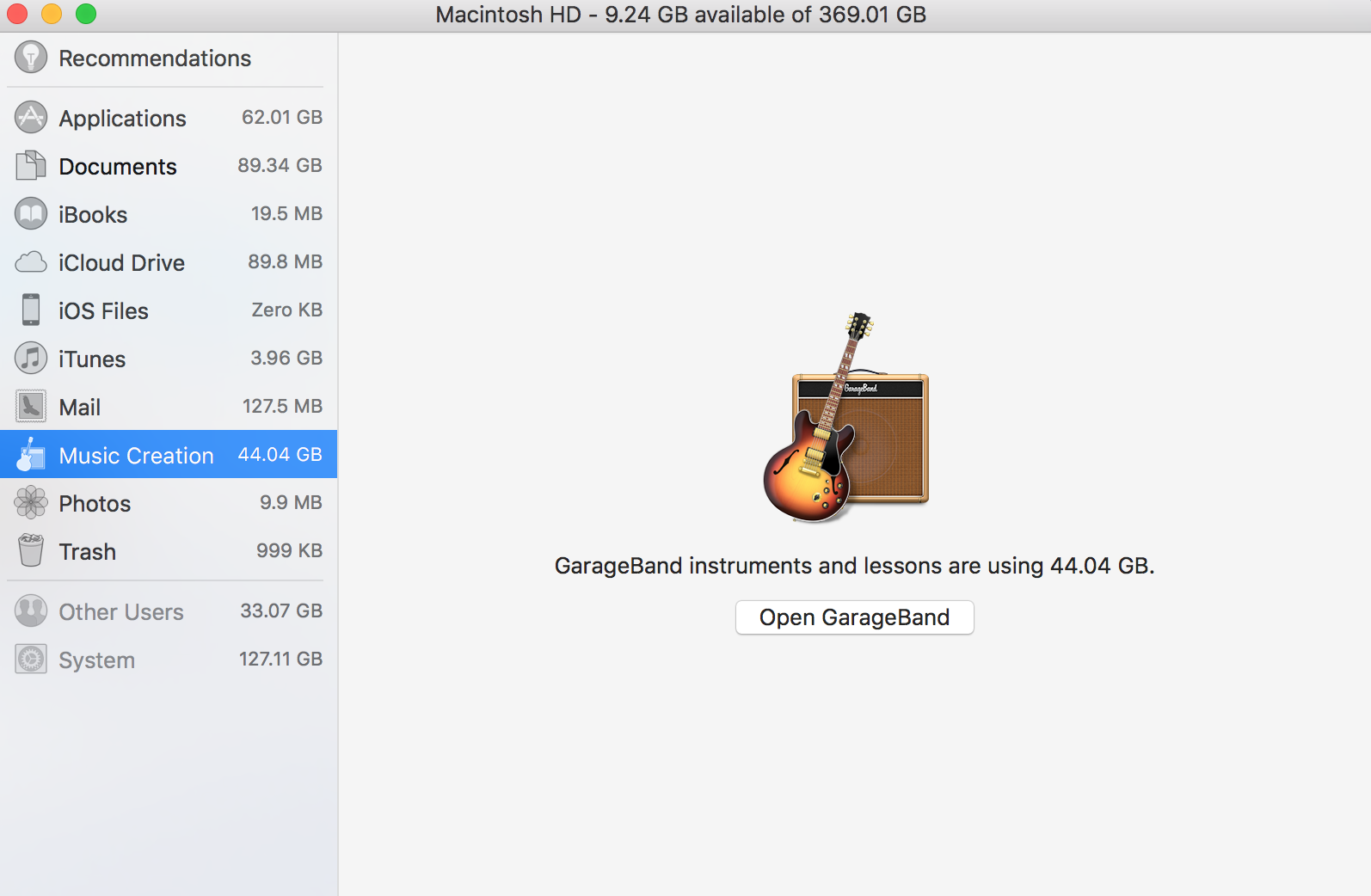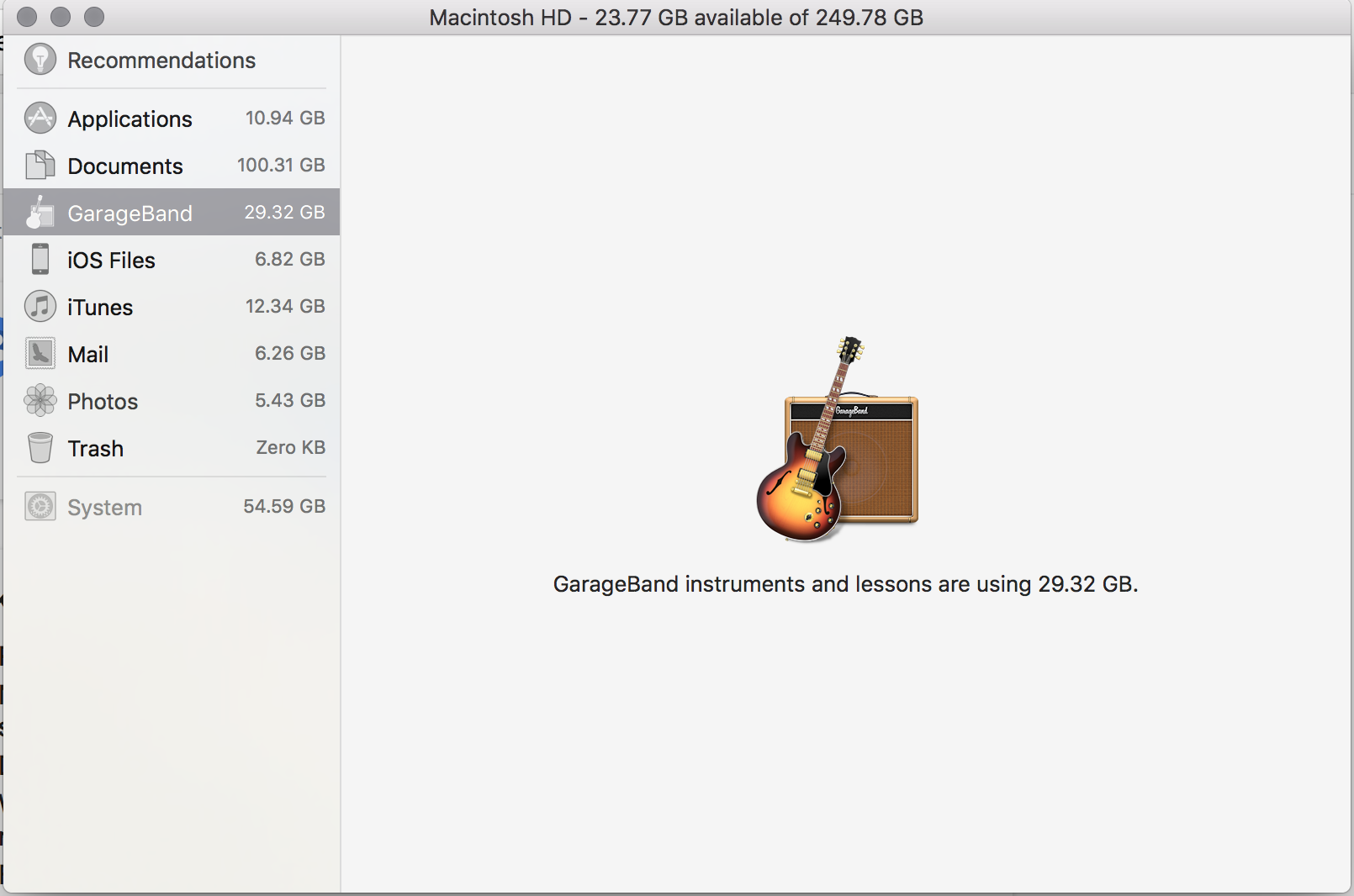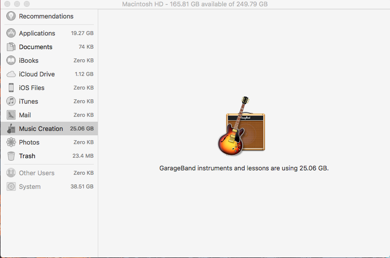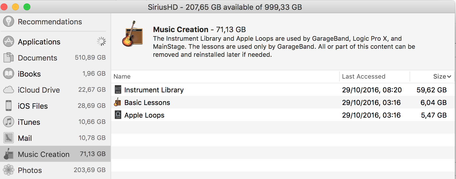 About this Mac is listing everything related to Audio as "GarageBand". If you installed Logic Pro X or MainStage all support for these applications will be listed as GarageBand as well, all Apple Loops, including the loops used by iMovie as sound effects, the instrument library with the sounds for the instruments.