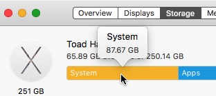 What I'm trying to say is just because "On This Mac" reports a certain "System" size it does not mean that is what the actual operating system is taking, that figure is given by /System and /Library (in my case 7.87Gb plus 4.88Gb) which is approx 13Gb, a far cry from the above 83.96Gb figure.