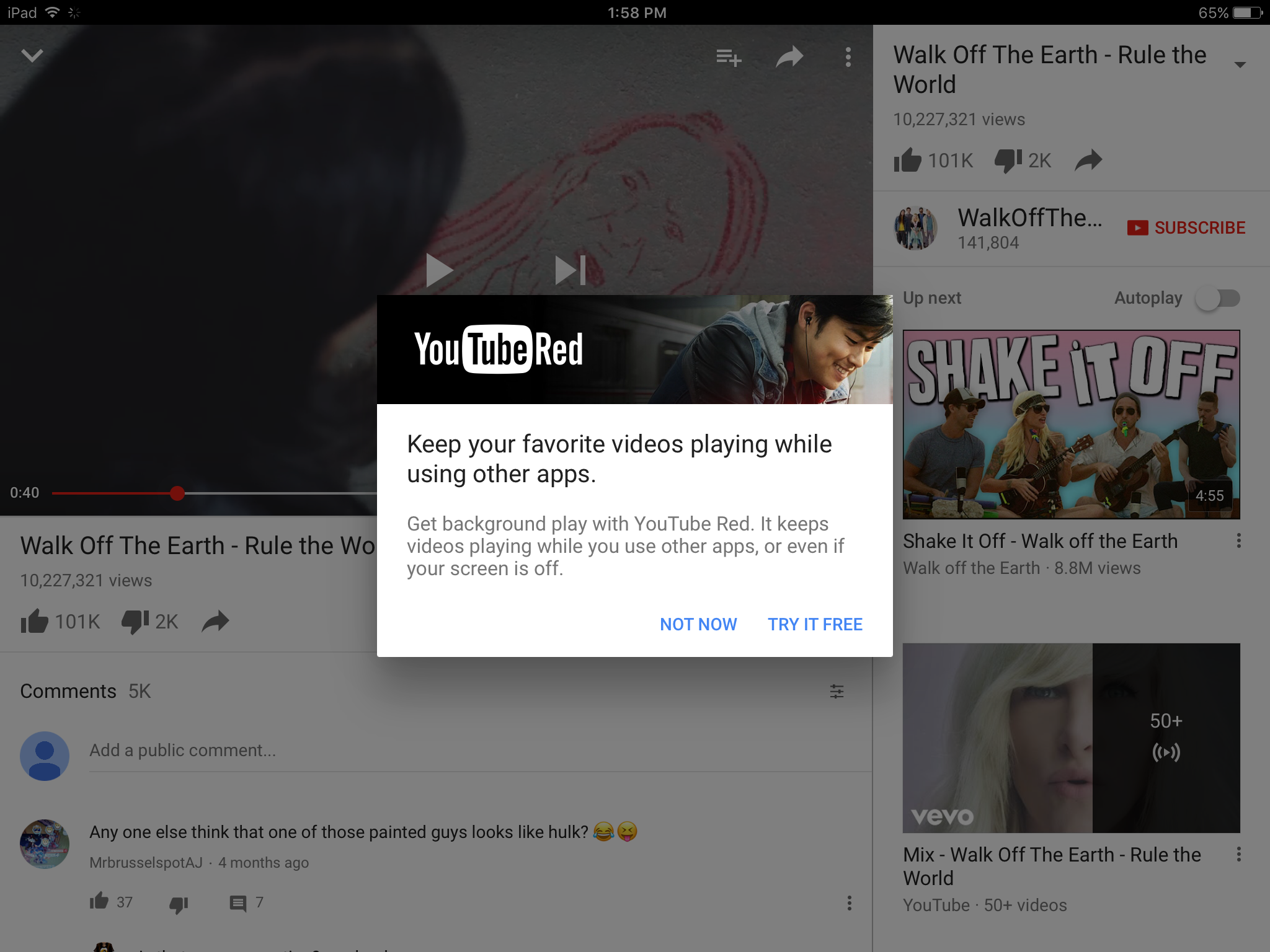 7) Pull up the control center and swap to view media player.. you should see the title of YouTube video and click play button to play
