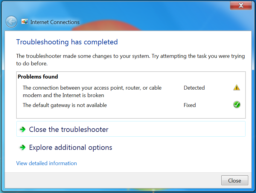 I already tried the Internet Connections troubleshooting option but it says everything is fine. I also tried the Network Adapter option, and it said it fixed something the first time I used it, but it did not help.