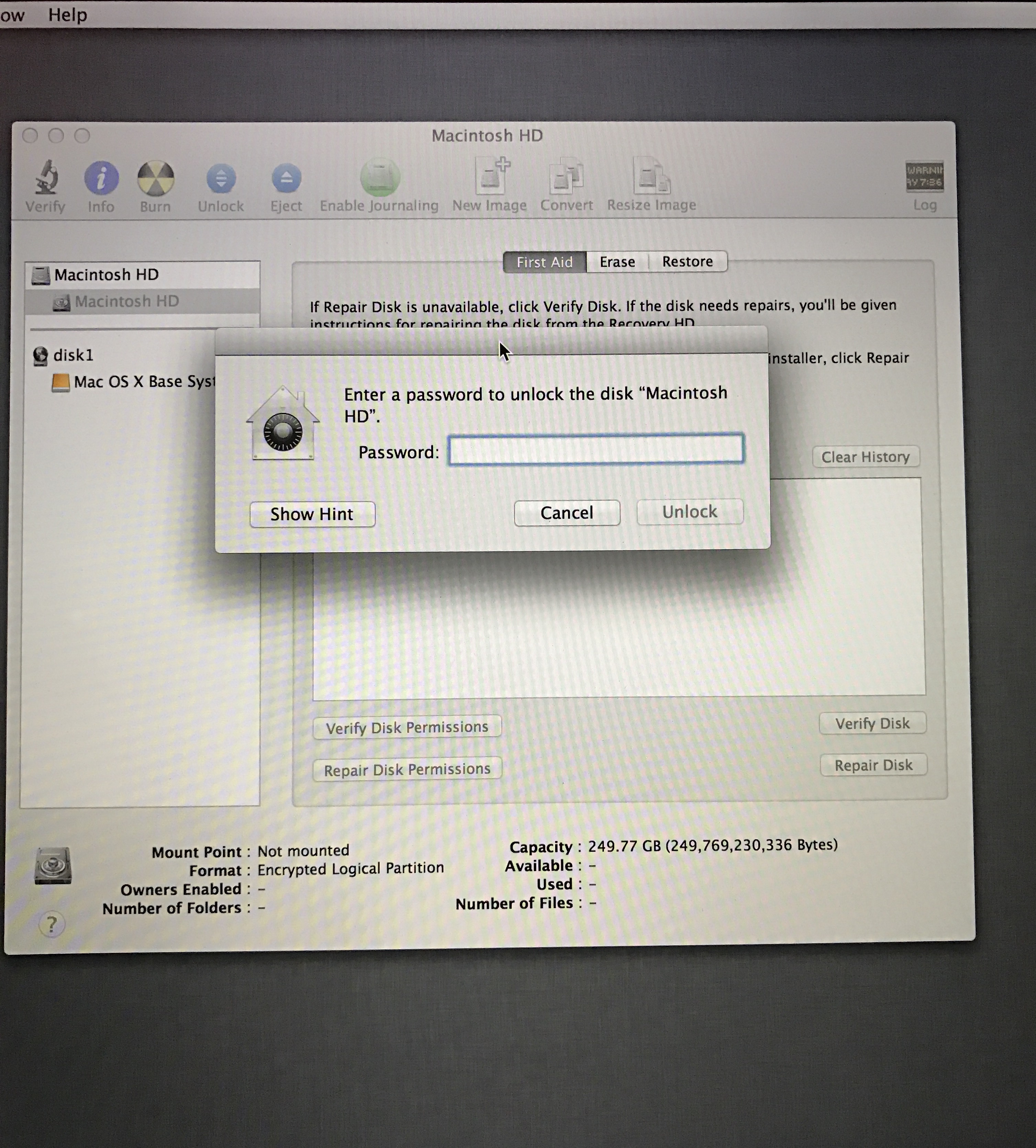 Truly sorry for all the questions but very thankful for your help. So I had to input my password for Macintosh HD to even be able to access the device itself above. Isn't that just unlocking it and going against the whole point of FileVault? If I did not input the password, I could not do anything in the device itself, everything was greyed out under 'Partition.'
