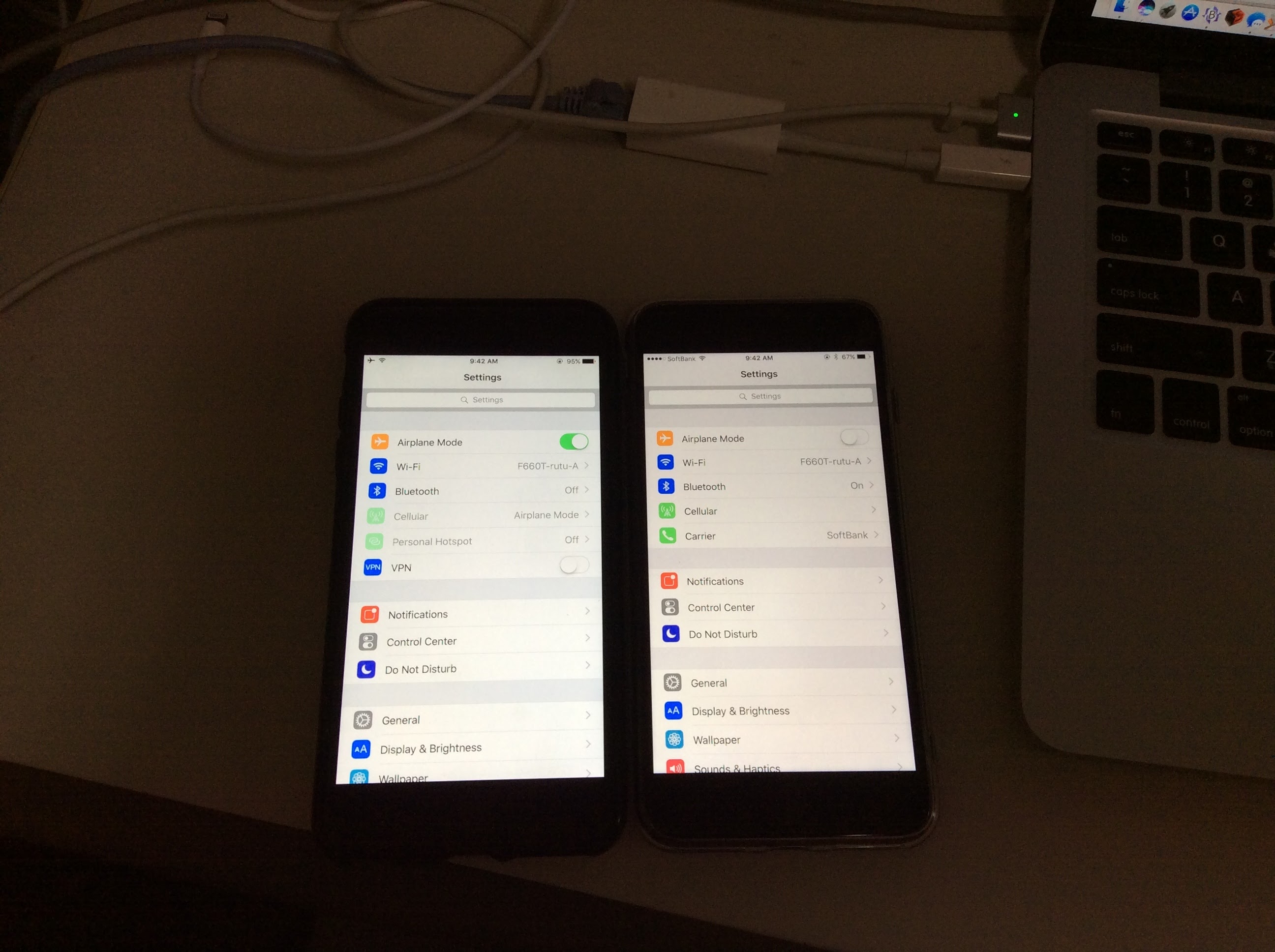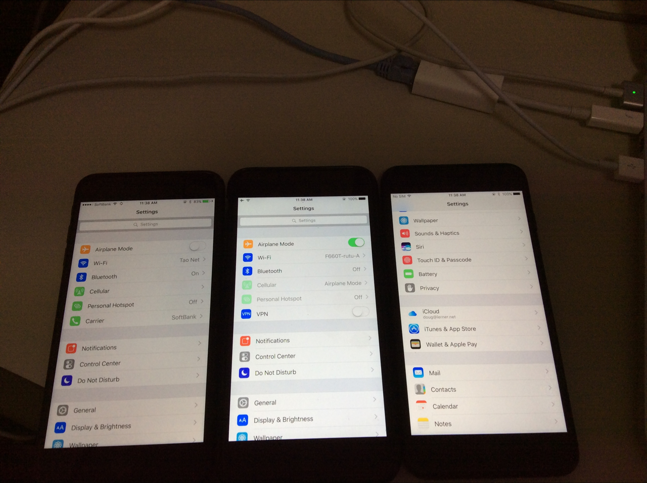 Here we have the 2nd replacement iPhone 7 Plus on the left, the iPhone 6 Plus in the middle and the 1st replacement iPhone 7 Plus on the right. The iPhone 6 Plus is obviously brighter than either iPhone 7 Plus.