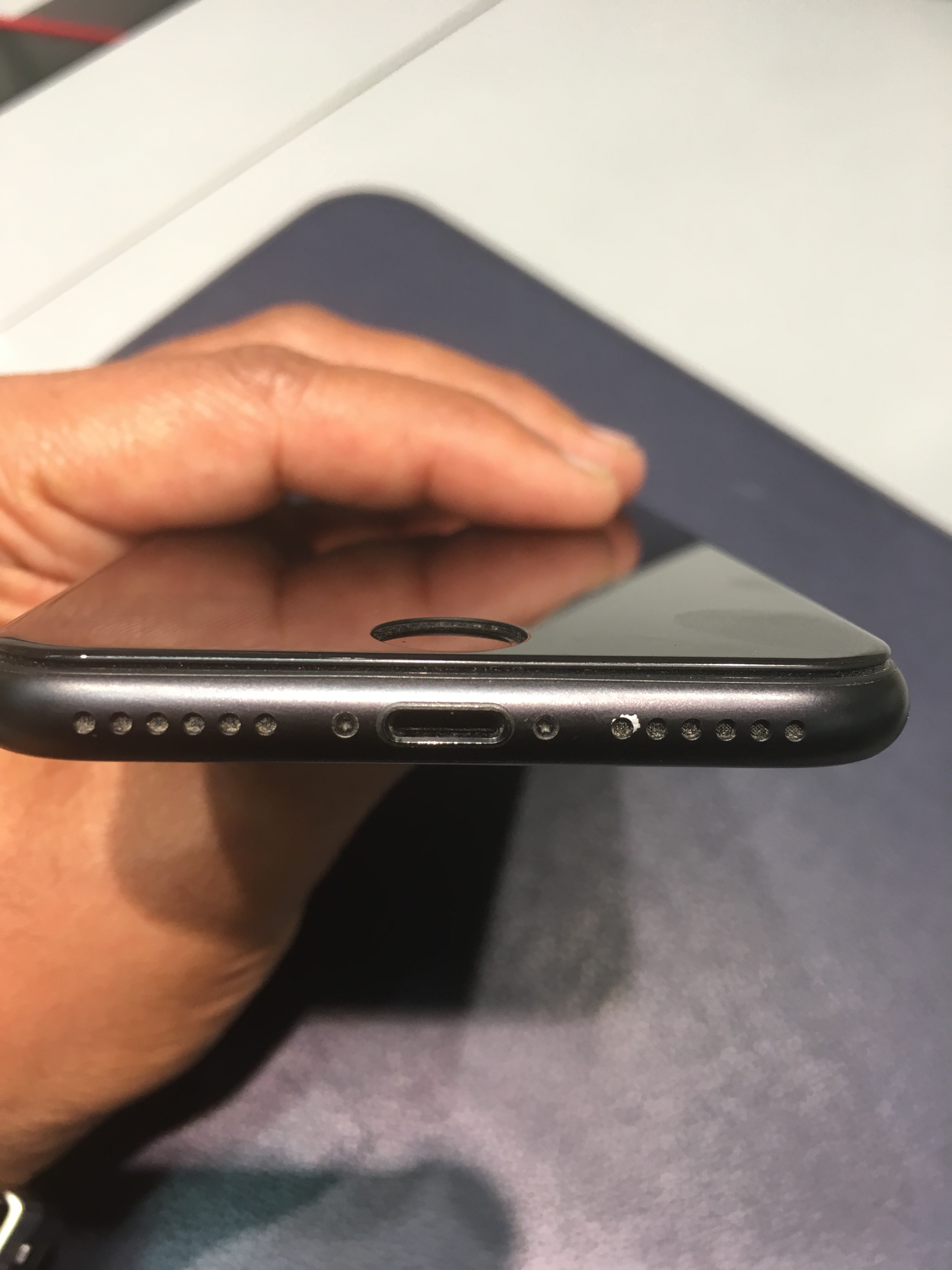 I have been using iPhone 7 Plus Matt Black for about one month with fully covered by a TPU casing and full screen tempered glass most of the time. I just open the casing once a week to wipe the dust off from the phone. Until yesterday when I take off the casing, and notice there is something at the edge of the phone body next to UP Volume button. At first I thought it just the dust. I try to wipe it using microfibre cloth as usual. Until I look closely it is the metal part of the body. It seems that the black anodised paint had been chipped off from the phone body. I am really disappointed with what happen to the phone because I was using it very careful.