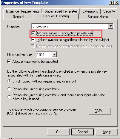 So if "Archive subject's encryption private key" is set in the template will OSX do the private key exchange?