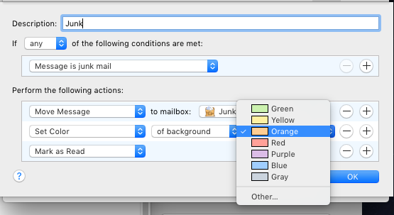 My junk mail is some orange color very hard to read. Is there some way to go black on white or something readable. Happened with Sierra upgrade.