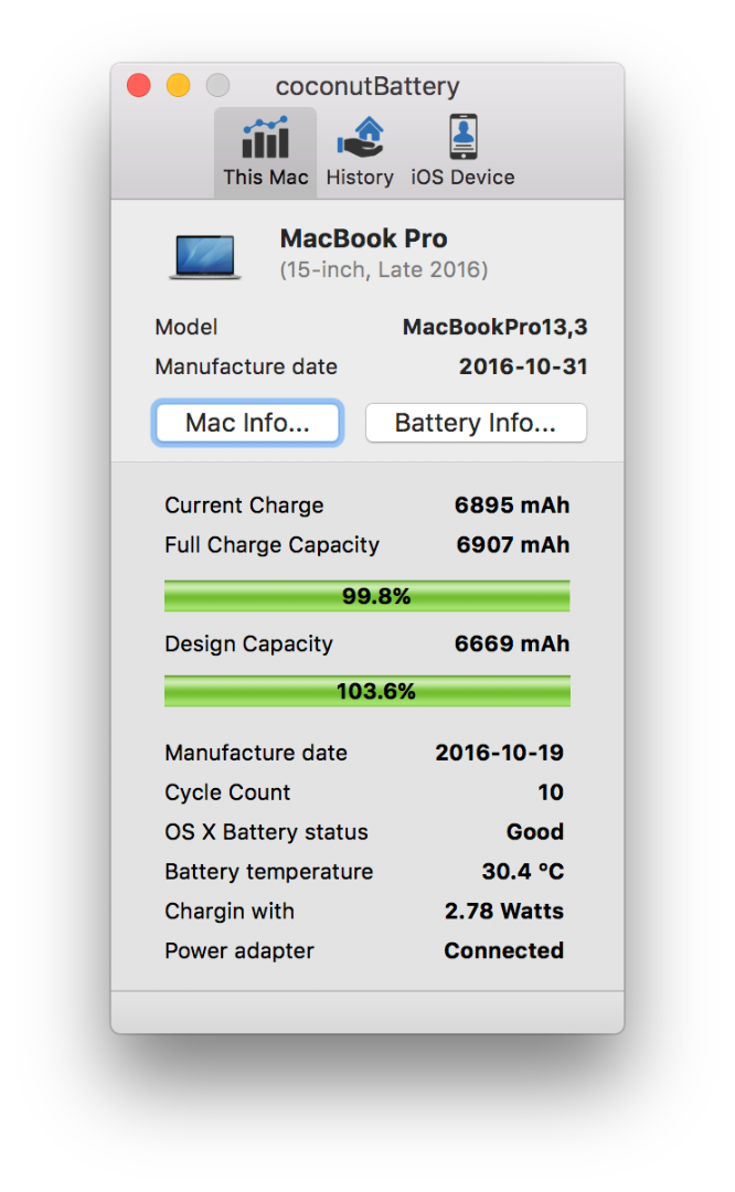 Can anyone say what is yours Full Charge Capacity of the 15" with touch bar? Having the same battery troubles but after reducing brightness from 100% to 75% i have a 2 hours advantage. I jumped from 4-6 hrs to 7-8 with 75% brightness and light use such as safari with 2-3 tabs. Still far away from 10 hours of "heavy" apple using.