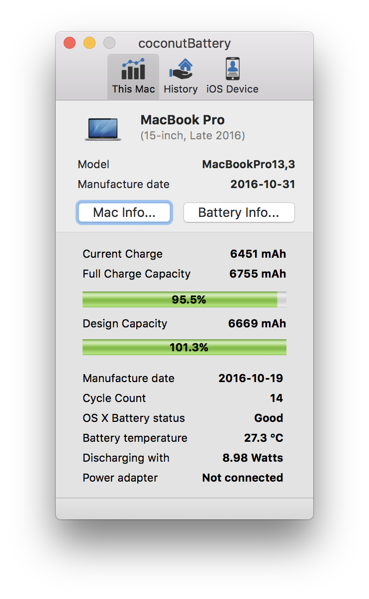MacBook Pro with Retina display, macOS Sierra (10.12.1), 15" with touch bar