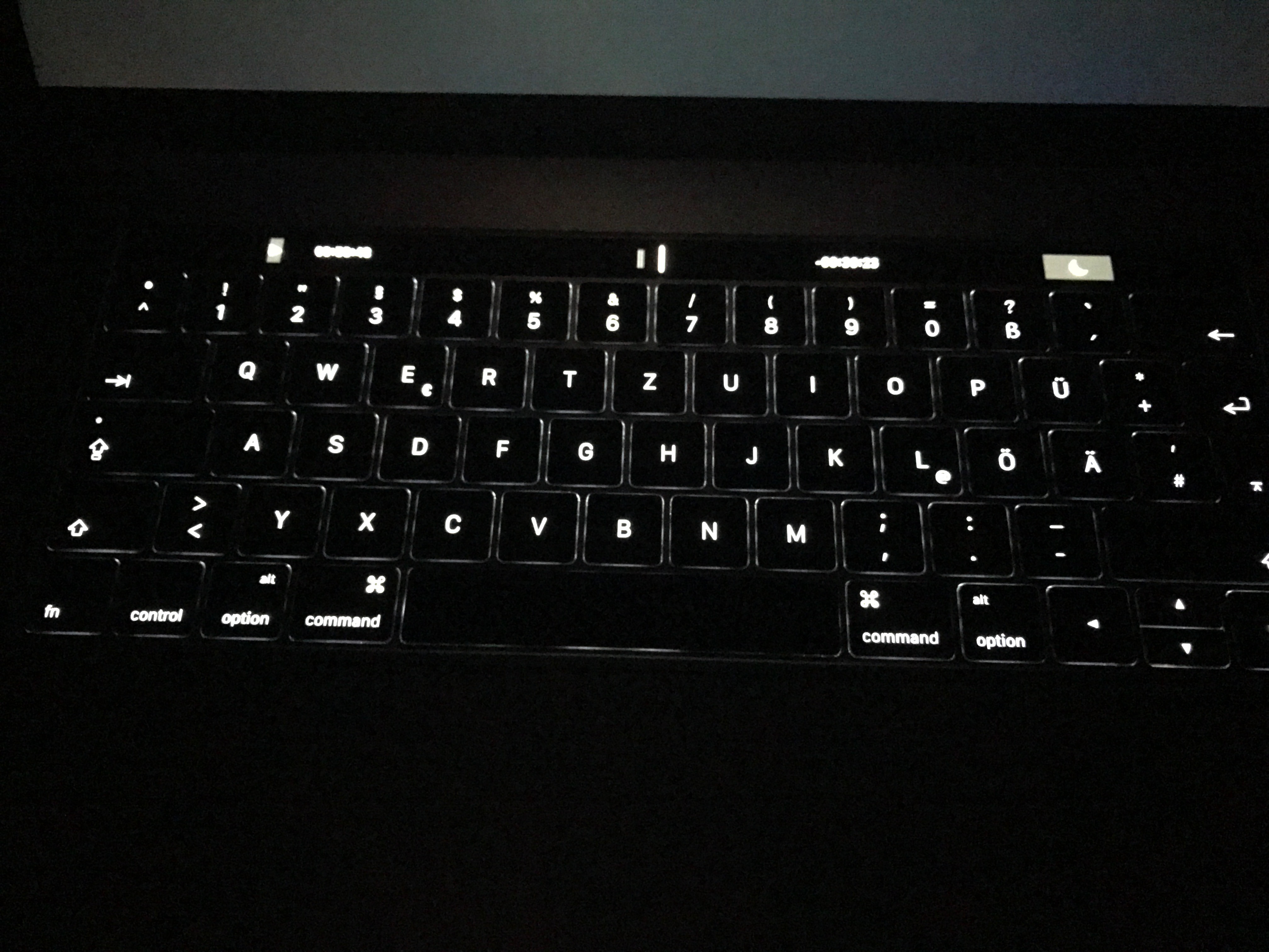 This is an image of the Touch Bar not working: also very frustrating, Apple Support could not help me, only way to put it back to work was pressing the fn key which shows the function keys and then the touch Bar worked again.