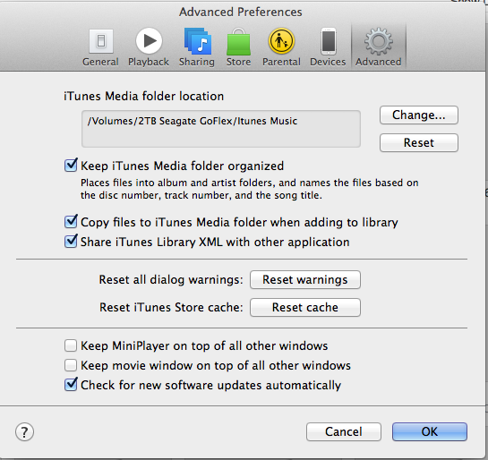 work just fine. Pulged my external drive into the new mac mini running iTunes 12.5.3.17 selected the same