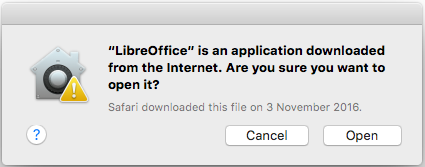 that is normal. Is Gatekeeper doing its job. After the verification OS X will be asking you whether you want to open LibreOffice