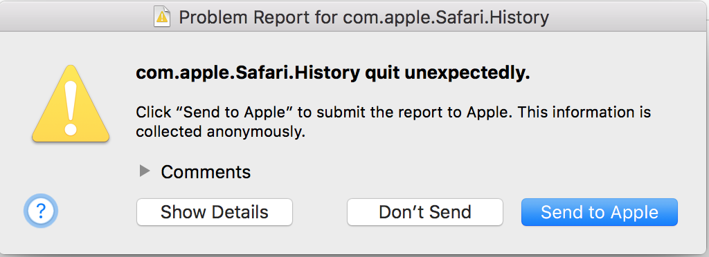 com.apple.Safari.History quit unexpectedly.