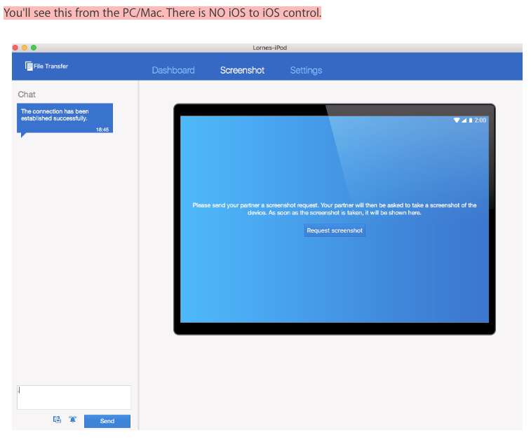 so what I conclude from your answers is that I should be able to see screen shots from the other iphone while I'm using the free version, this is helpful too, I guess I dont need to control the phone, viewing the phone helps aswell.