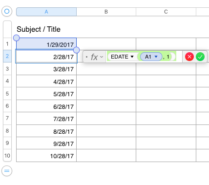 Add one month in Numbers