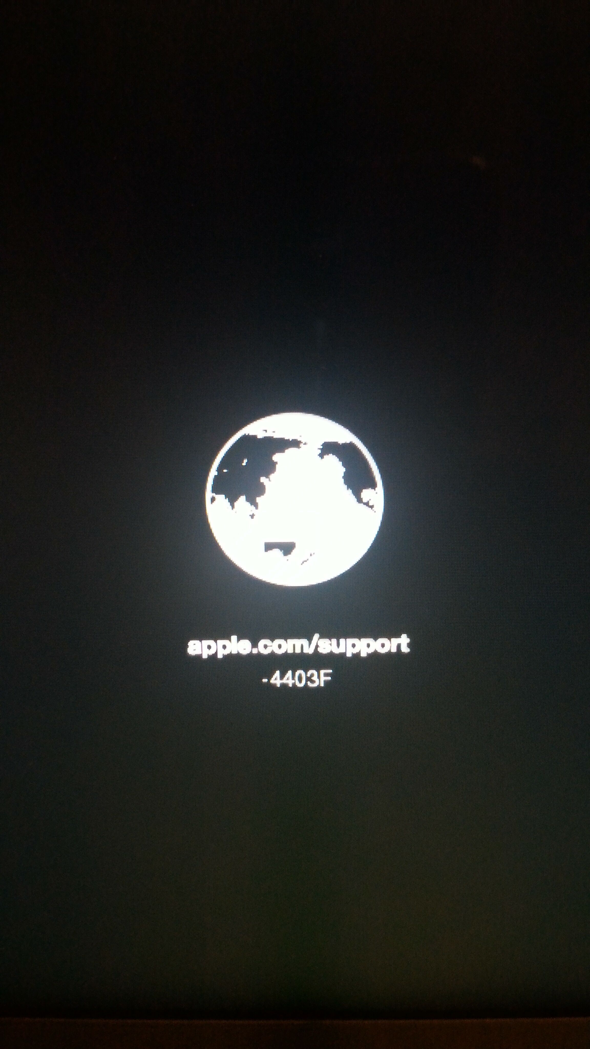 Mac book doesn't boot. Screen shows "apple.com/support -4403F"