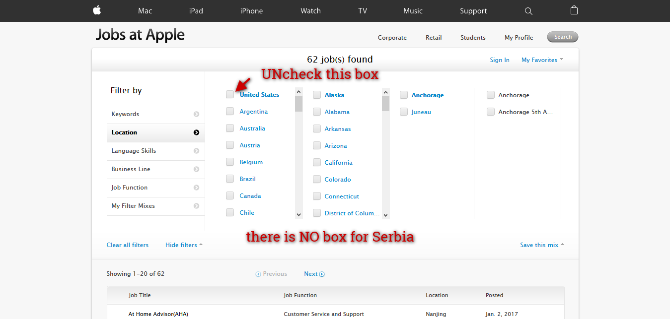 Well,i'm intrested in working for apple us "at home advisor". Is ther possibility to get that job her in Serbia (Balkan peninsula)? I am young and focused person whit strong personality.