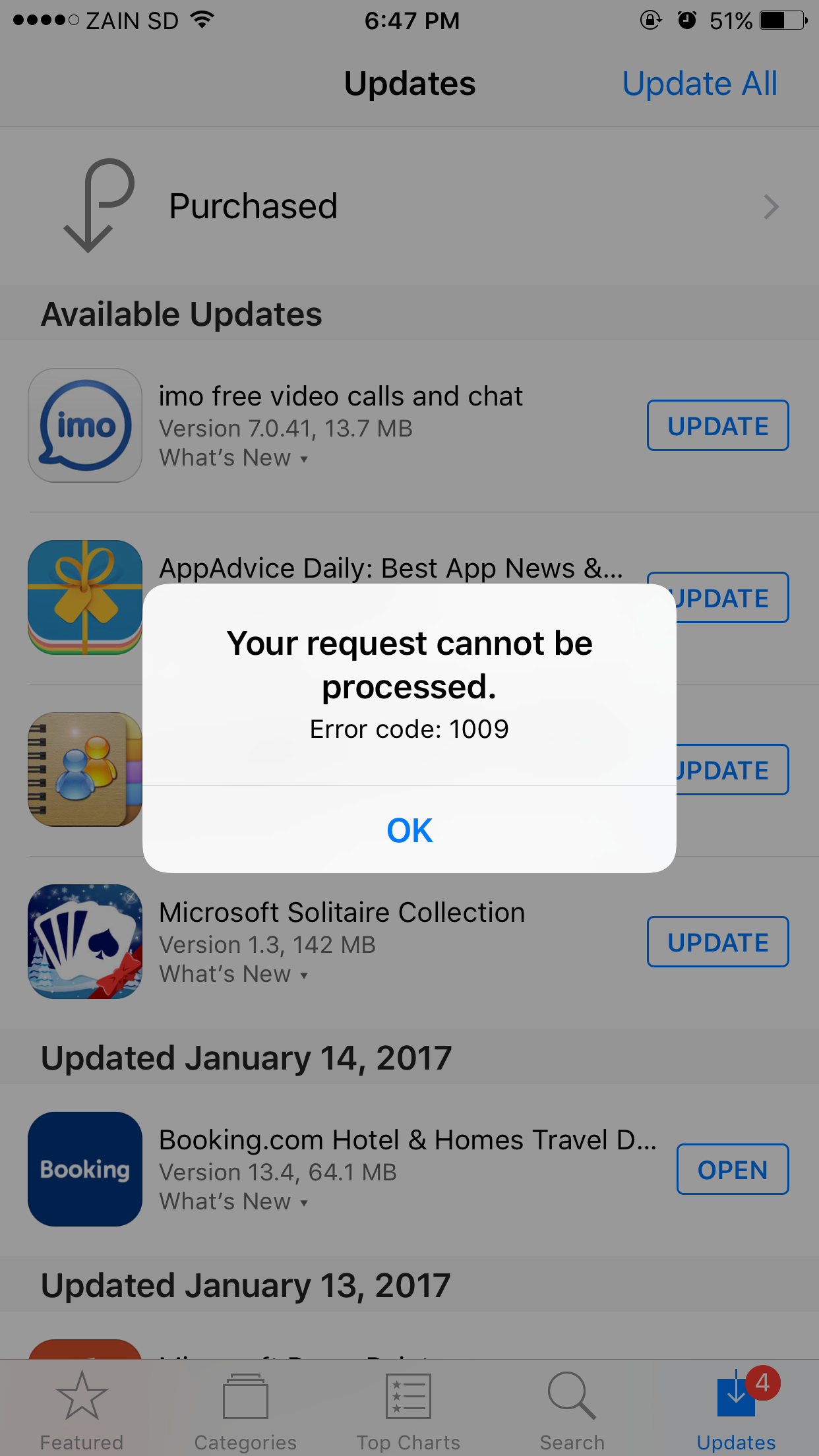But actually this error 1009 appears only in sanctioned countries. For example there is no apple store in most African countries. But they don't get error 1009.