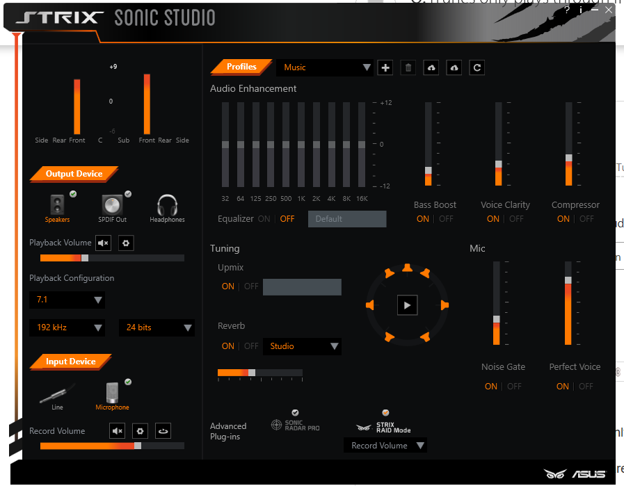 Are there other settings that i need to change that enables all 7 speakers? The soundcard software is called ASUS Sonic Studio.