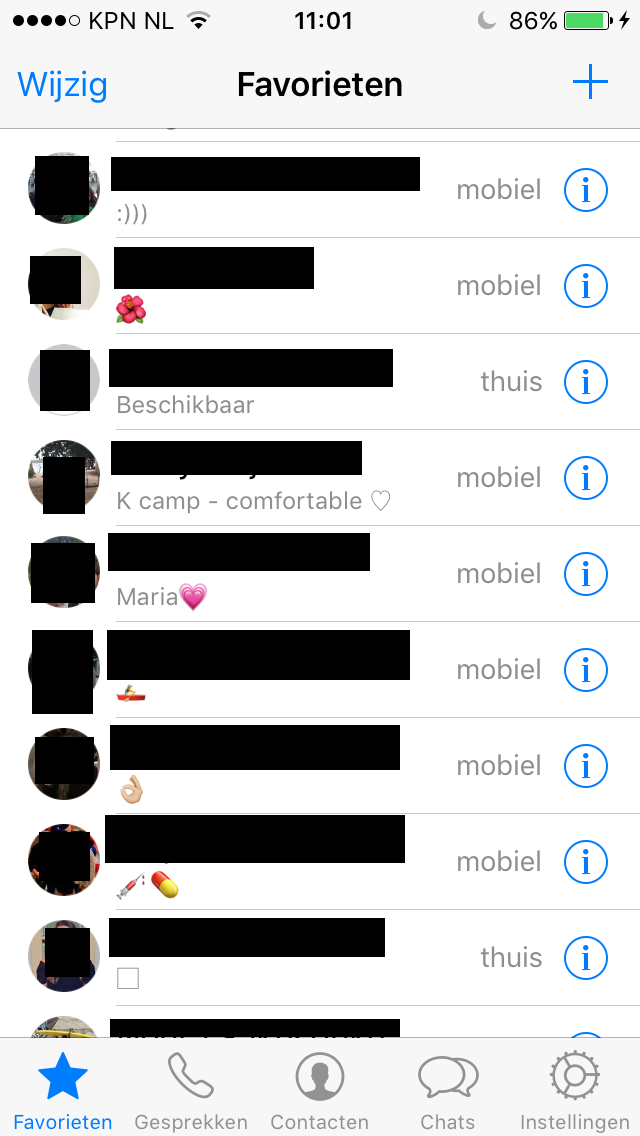 When I add the same persons to an old iPhone 5 to test whether the emoji in the status shows up, it does show up on my old iPhone 5.