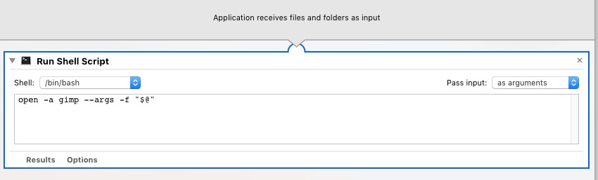 I would like to have the programme Gimp start on OSX Sierra with the command line argument