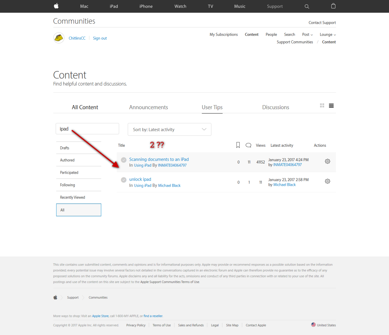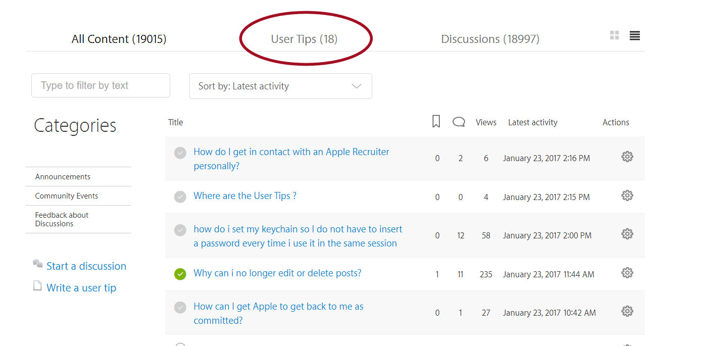 I've updated the user tips counts in my original Site map of Communities and Categories tip to match those in the new Community Site Map - User Tip Links tip. I've also made the order of both agree with the somewhat buried Apple Support Communities Site Map.