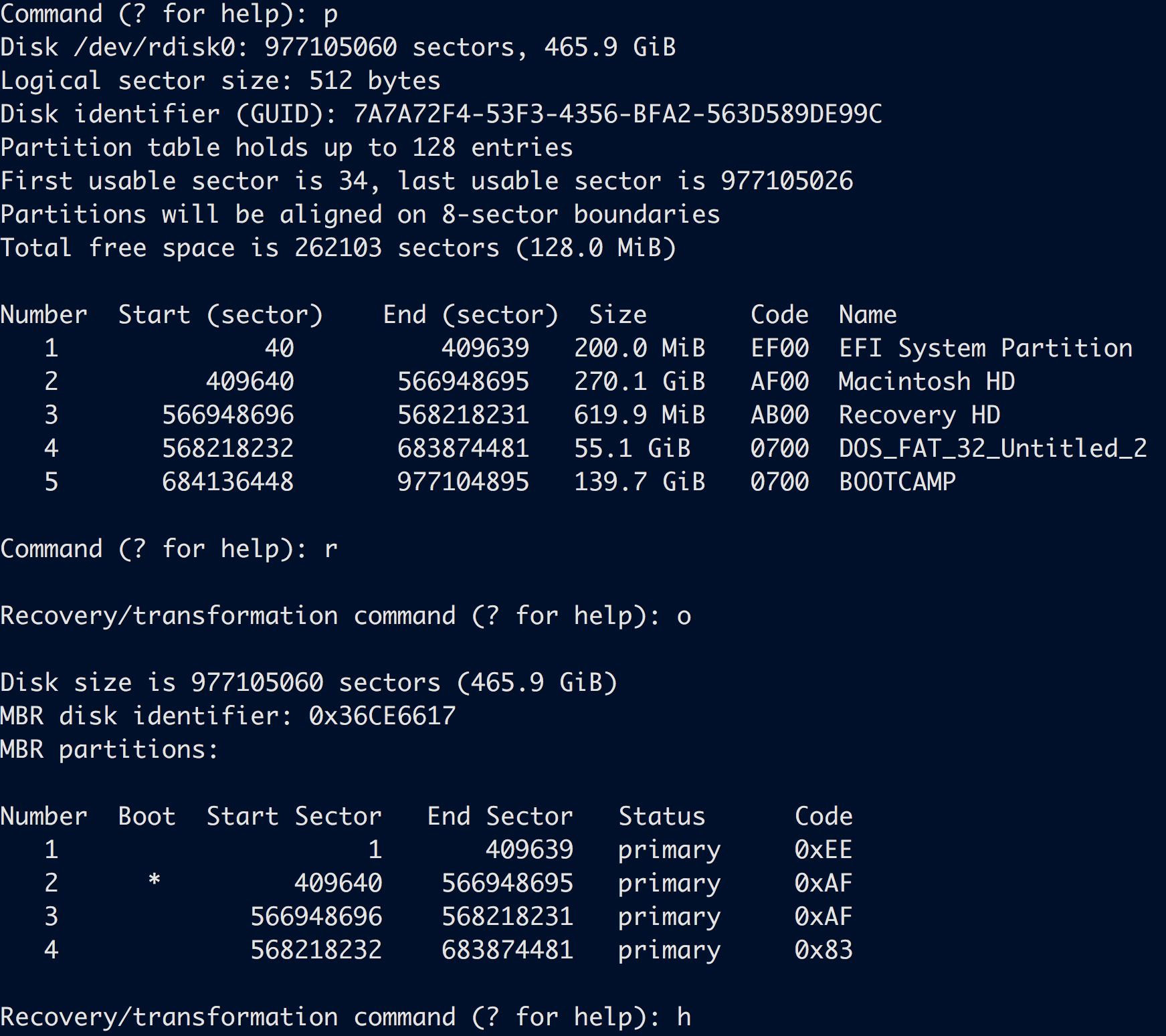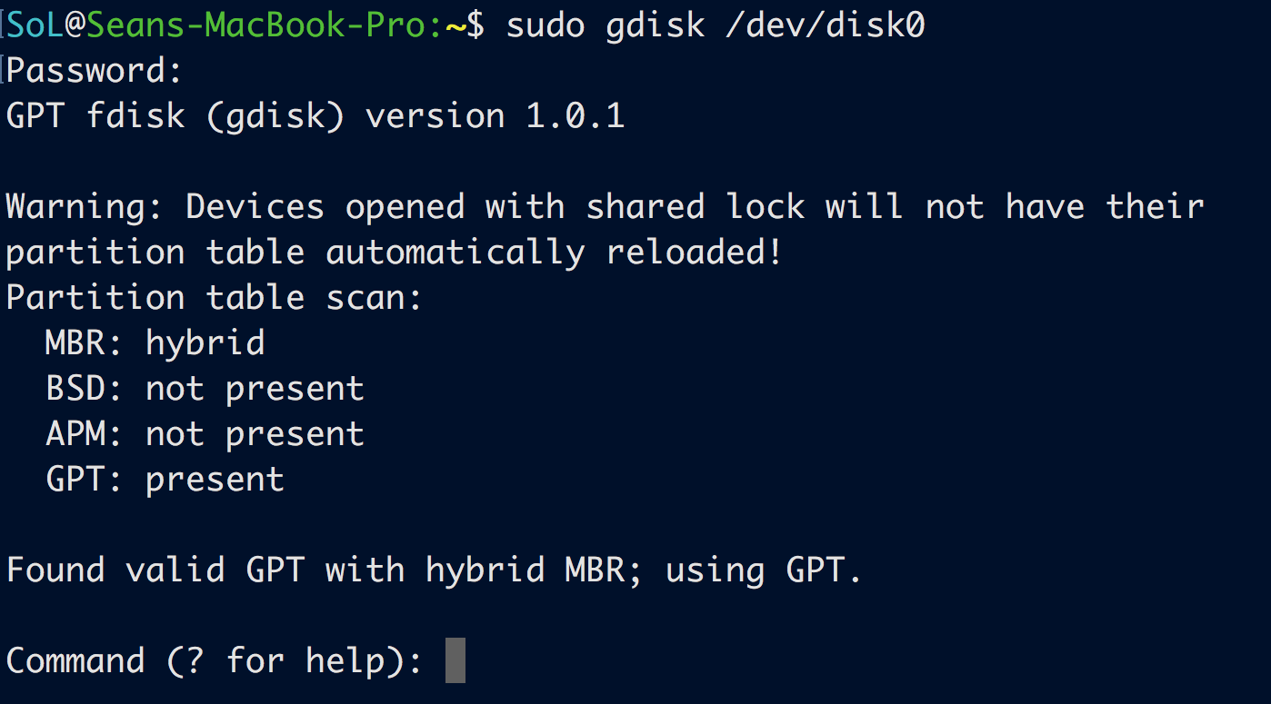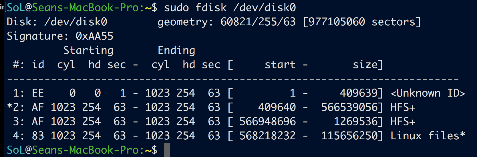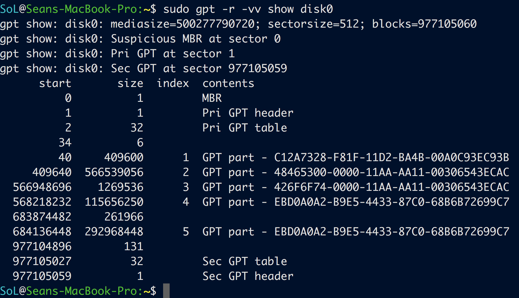 returned "sudo: gdisk: command not found" , will check that out if the information is required