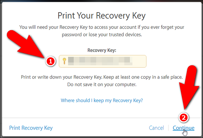 Keep your new Recovery Key in a safe place. Your old Recovery Key won't work anymore and you can't use it to reset your password or access your account.