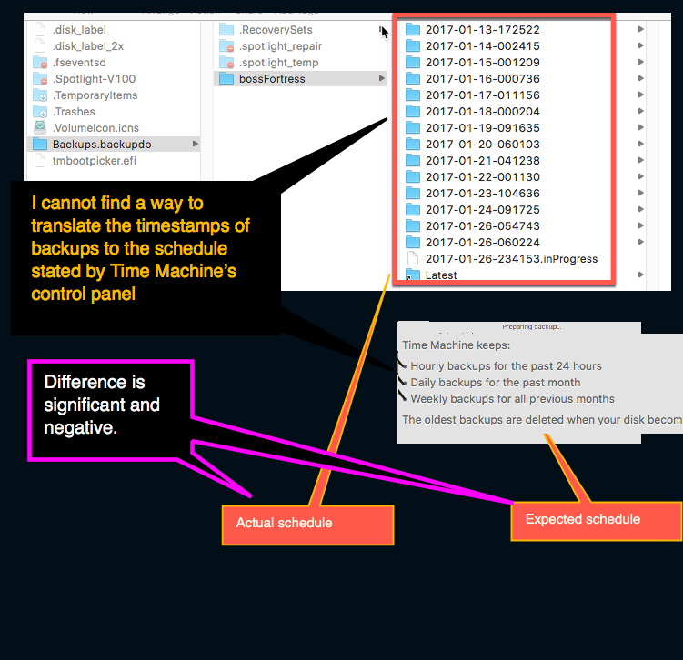 You will also see that there is only one backup per day for days beyond 24 hours ago. So you have one per day from 2017-01-26 backwards, where the hourly backups for those days have been aggregated.
