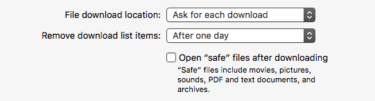 And if you open safari & its preferences > file download location is set to ask for each download and this a security set , so that if you try to download an unidentified app it will prompt to enter admin name & password and without entering both fields , the app won't get download and open safe files after downloading must be also unchecked .