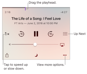 How can I slow down speech in my Podcasts? It seemed to come on without me doing anything anything on my part.