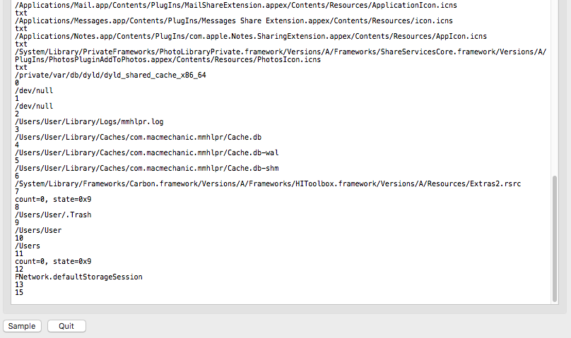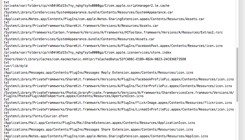 In the code you can clearly see that an app called Mac Mechanic is present in one of the library caches under the path: Users/User/Library/Caches/com.macmechanic.mmhlpr ...