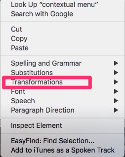 Once this service is enabled, you simply select the uppercase text to convert, and from the application menu, choose Services... WordService: Lowercase, or simply the keyboard shortcut associated with it.