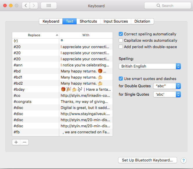 7. Now my 3 devices had the same text replacements, and any modification made on any of them was syncing perfectly across the macbook, ipad and iPhone.