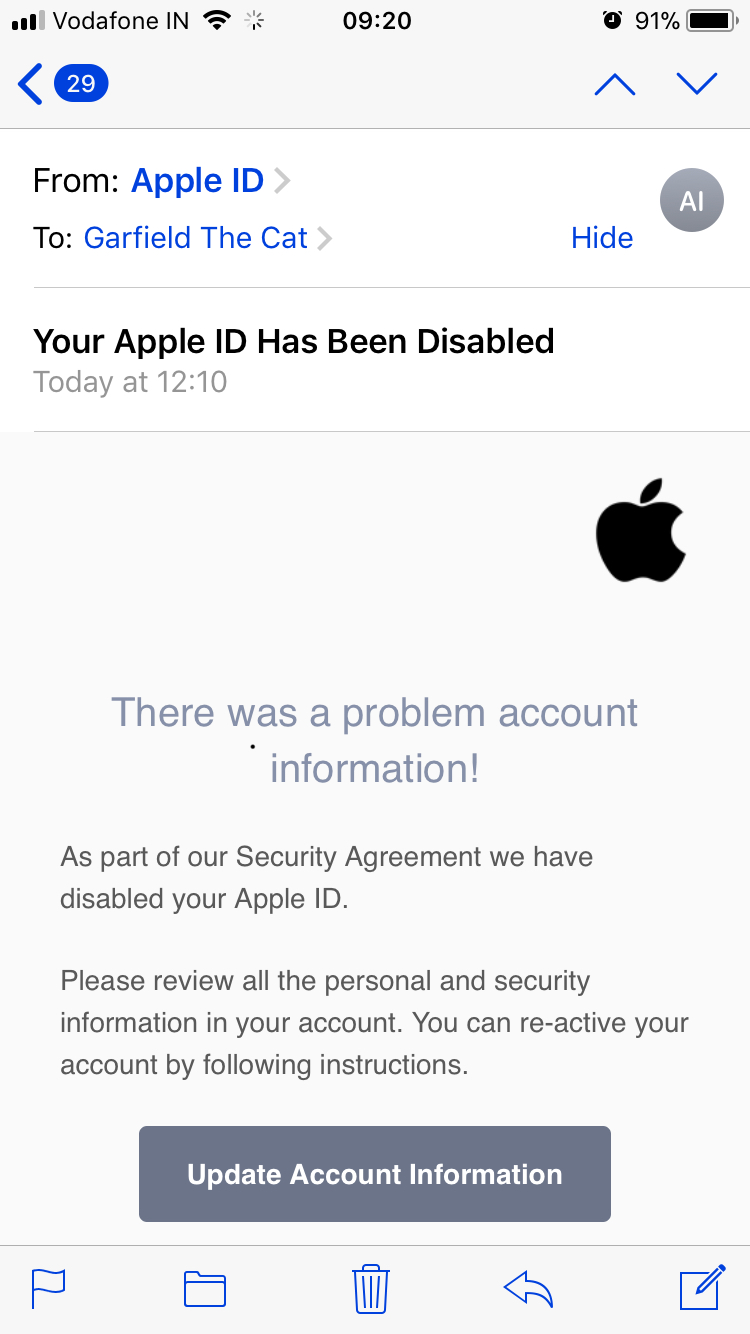 I received an email claiming my Apple ID had been locked due to a sign in from an unknown advice. When I clicked on the link to unlock it, the website, which was apple.support but did not have the lock to verify it's their actual website, asked for my birthday and social security number.........