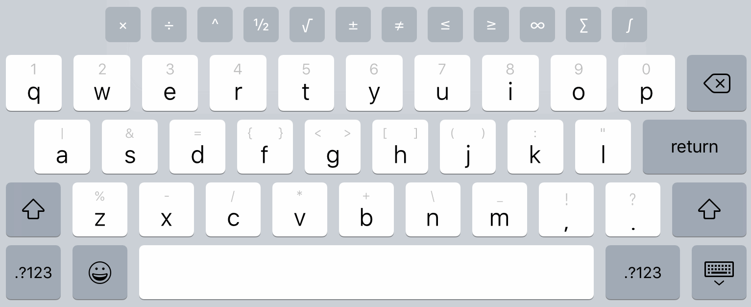 Extra math characters on the on-screen keyboard -- Pages 3.1 for iPad
