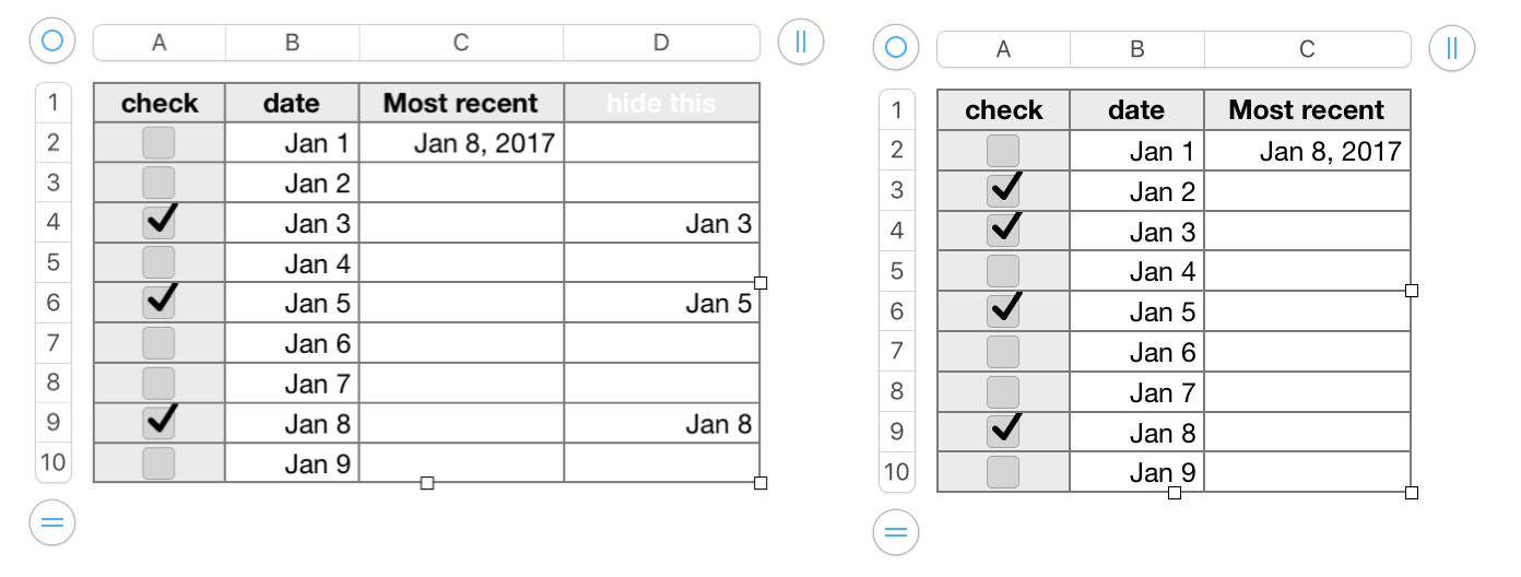- (select entire row or column of your if-formulas that combine the date with the checkbox)