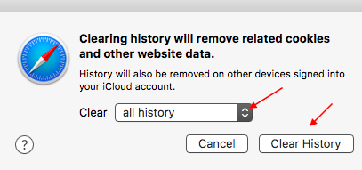 A window will appear , click on drop down arrows and choose as All history > click on clear history .