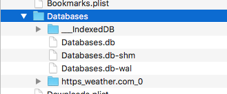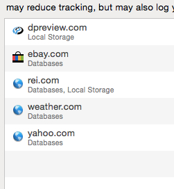 Note what appears to be location info "Databases & Local Storage". This is after I had followed dominic23's instructions for removing site specific items like REI from these 2 locations. Here's what's left in those folder when I'm done AND after removing all cookies again and they've repopulated.