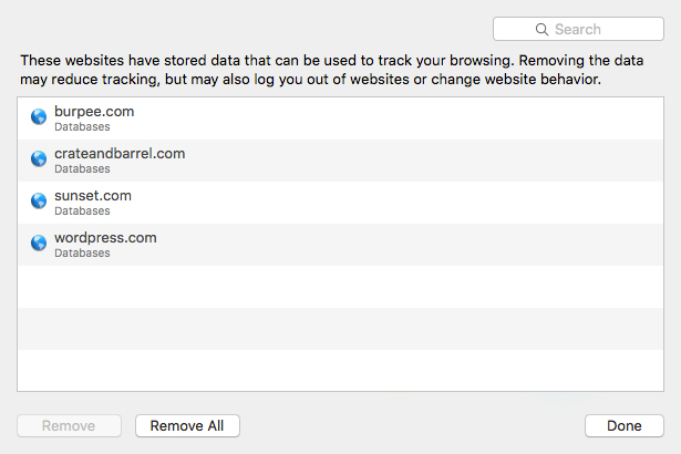 Can't Remove a Few Cookies Safari 10.1