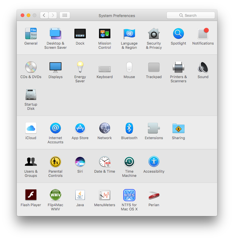 System Preferences Dock Icon has red circle with 1