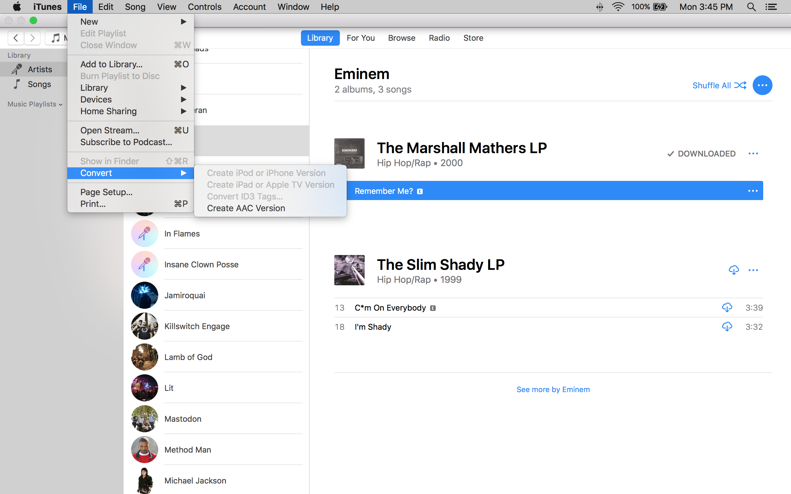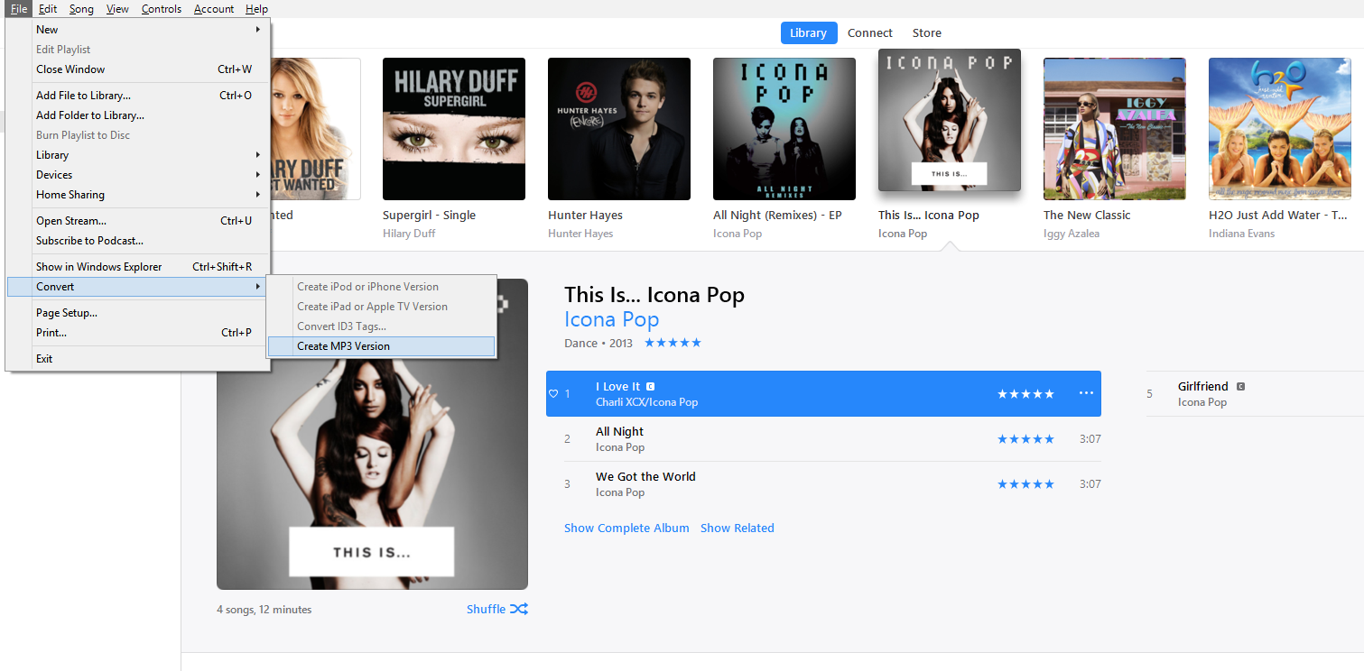 The convert option under the file tab is all greyed out... but it does show MP3.