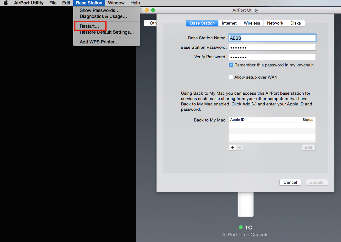 Can I restart my Airport Extreme from my Mac