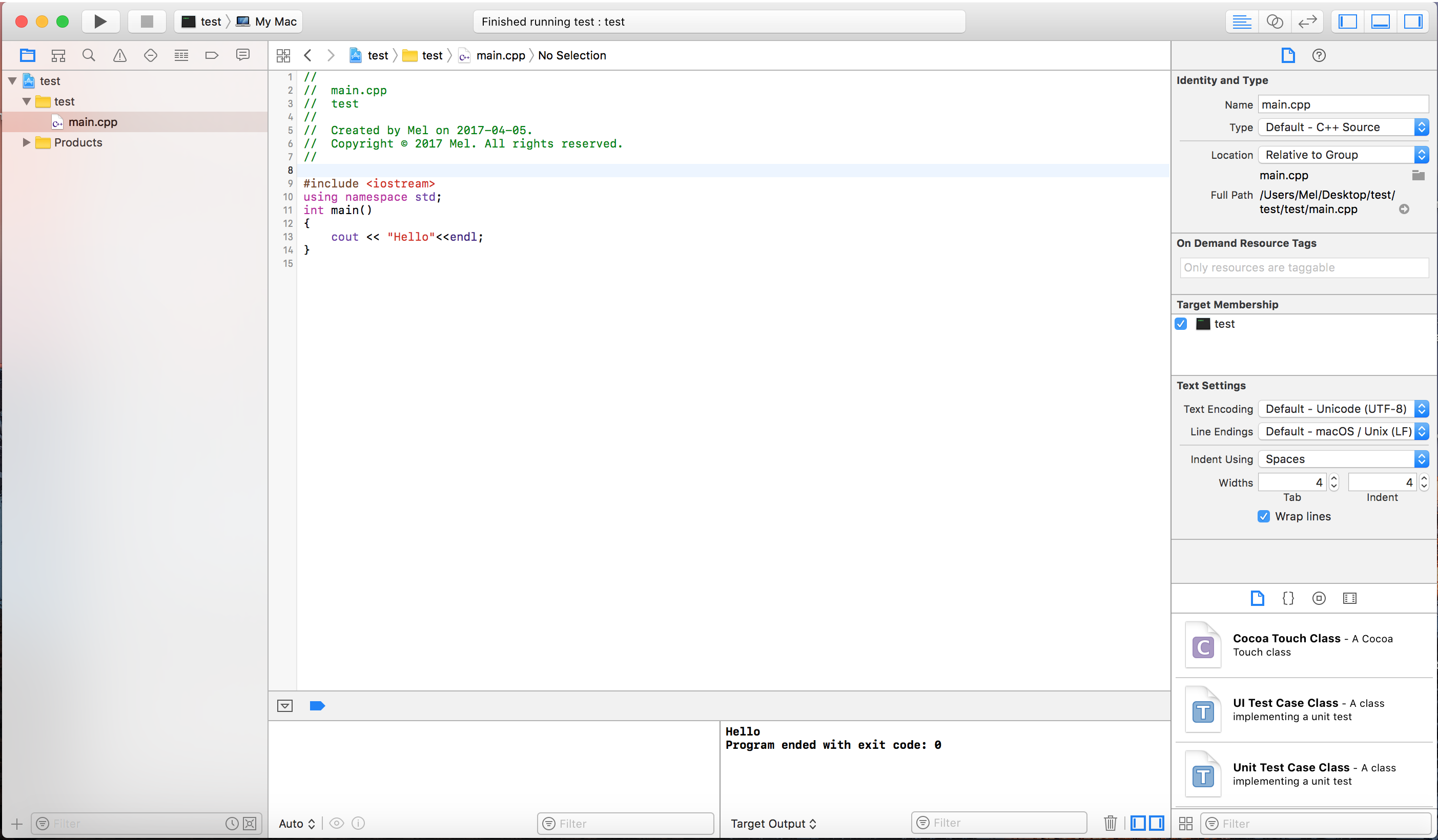 It will not display Hello or any cout command for that matter. I have tried uninstalling and reinstalling Xcode. I have tried taking it in and out of Developer mode with the Terminal Command DevToolsSecurity -disable (or --enable) And that will not resolve the issue.
