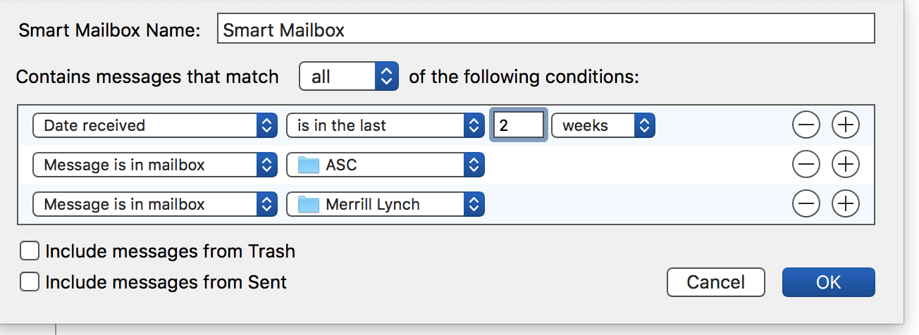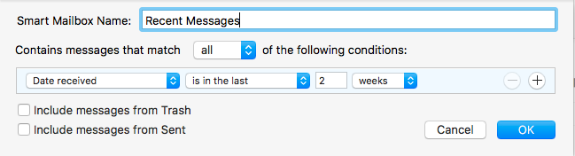 I also have a smart mailbox that shows mails received in the last 2 weeks.