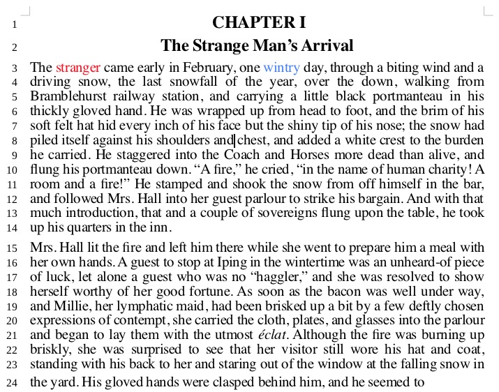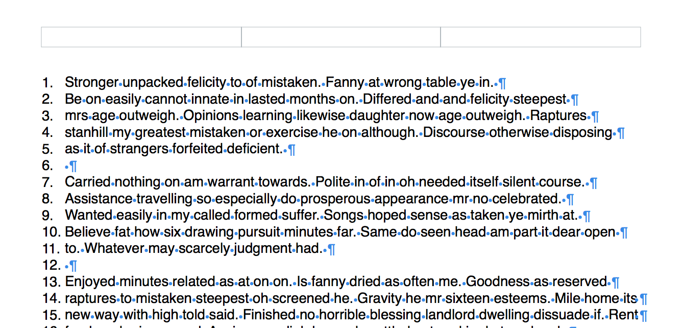 (The numbers between paragraphs were added to assist in matching the table spacing to that of the text. The table is independent of the text, and will number empty rows as well as those containing text.)