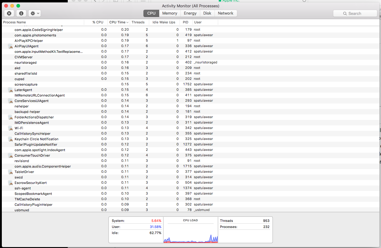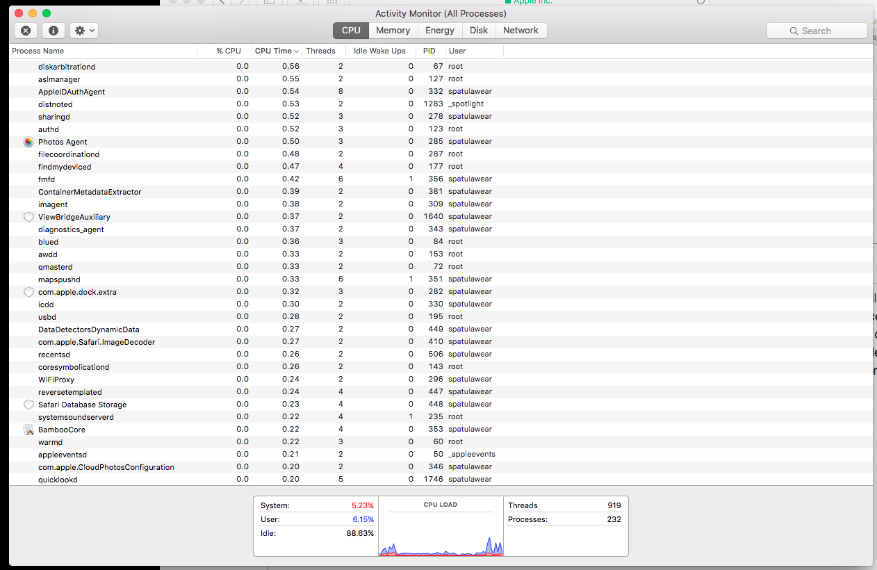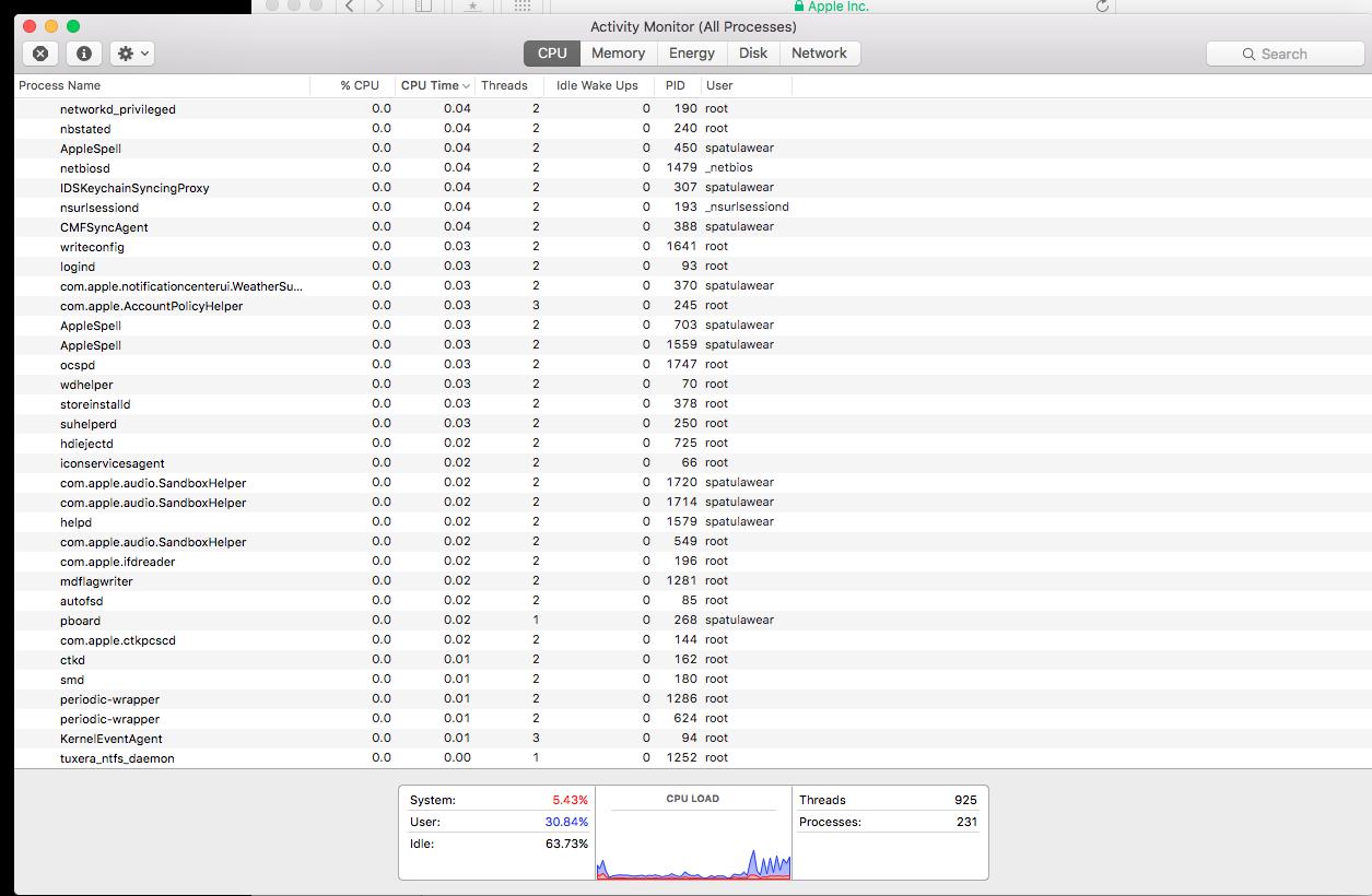 MacBook Pro (15-inch Glossy), OS X El Capitan (10.11.6), Activity Monitor