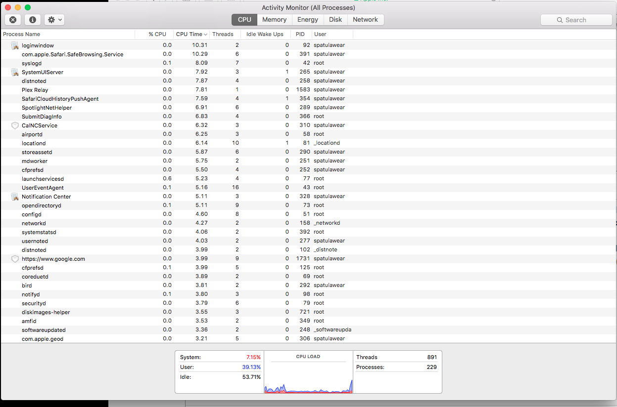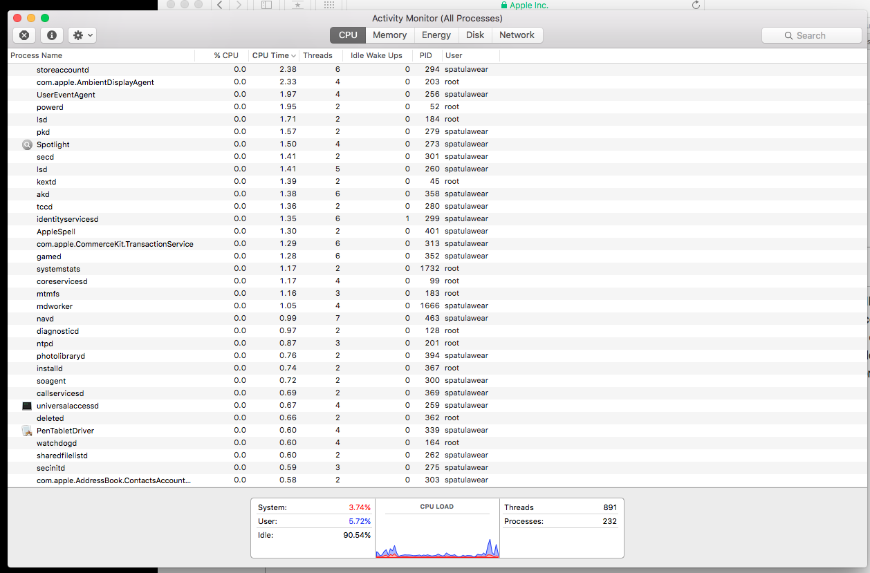 MacBook Pro (15-inch Glossy), OS X El Capitan (10.11.6), Activity Monitor