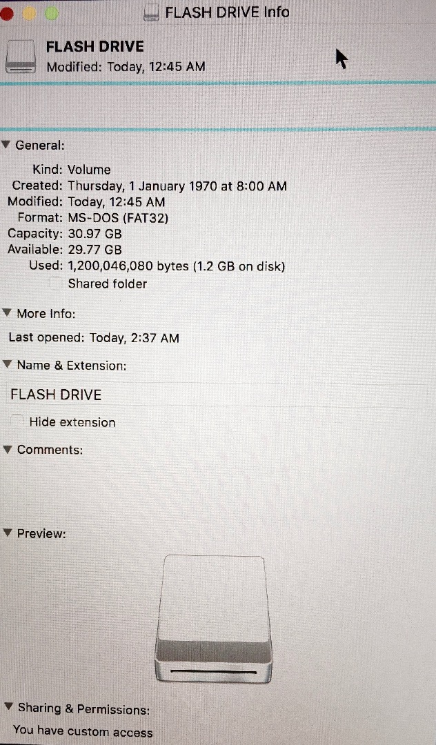 Then, switch back to the Terminal and press return. The command prompt should change to contain the name of the flash drive. If that doesn't happen, you did something wrong, so do not proceed any further.