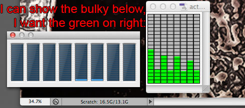 I loaded 10.9.5 to work on a project -- now I can't find how to load the floating vertical green bars to monitor my cores. I can get the bulky blue bars, but I like the green set.
