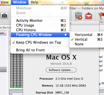 In 10.6x I get them in Window> Floating CPU Window> Vertical:
