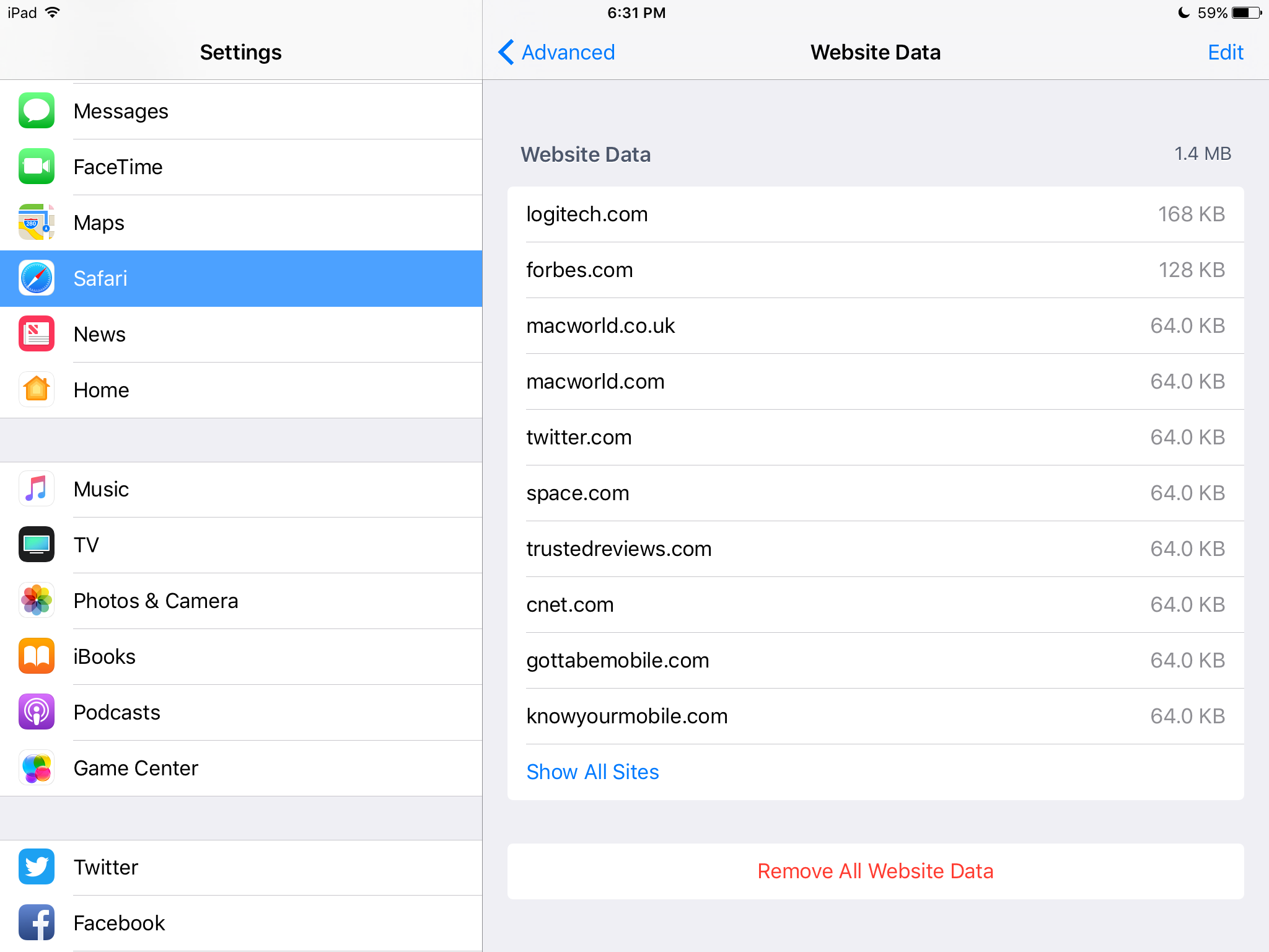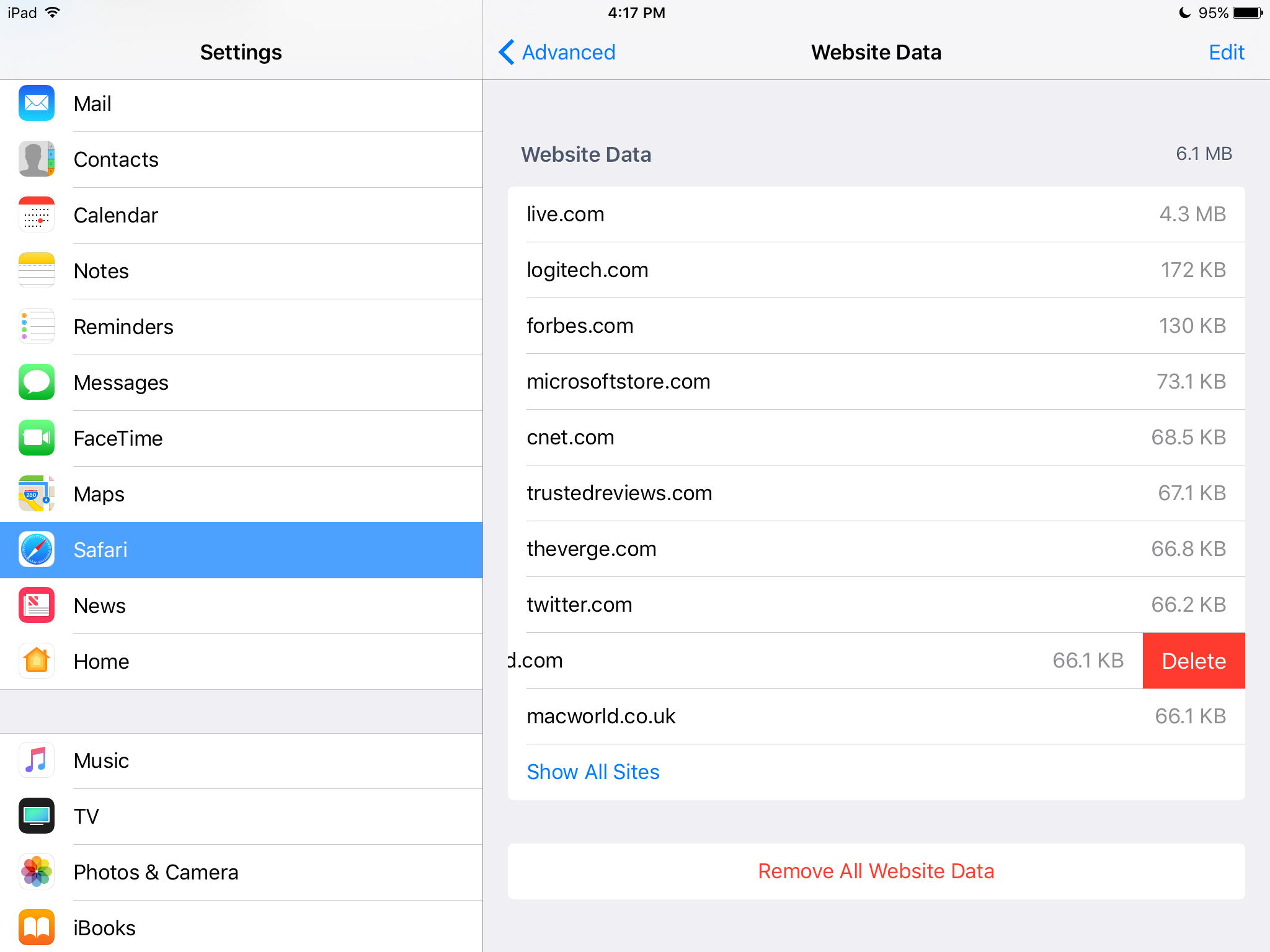 Safari iOS 10.3.1 not clearing Safari cache